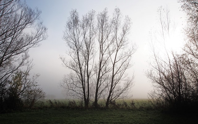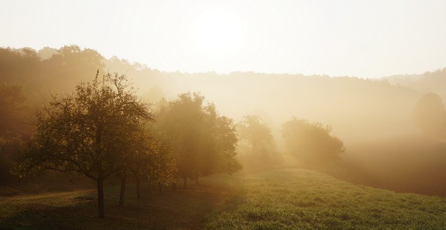 Nebel ist ein natürlicher Weichzeichner. An den zahllosen winzigen Tröpfchen in der Luft wird das Licht gestreut und fällt damit von allen Seiten auf ein Objekt im Nebel. Schatten entstehen erst gar nicht oder werden deutlich aufgehellt. Die Kontraste im Bild sind also minimal. Gleichzeitig nimmt die Sättigung der Farben ab, alles tendiert zu einem aquarelligen Effekt.