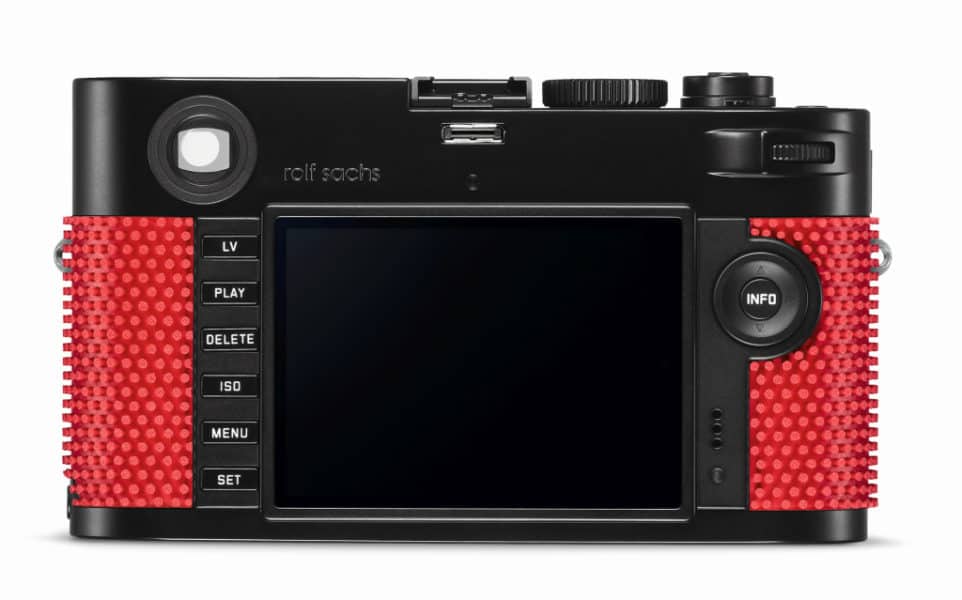 So besitzt die Sonderedition der Leica M-P ein schwarz lackiertes Kamera-Gehäuse, deren Design Rolf Sachs nach den eigenen Vorstellungen abgerundet hat und so eine „einzigartige Haptik“ schaffen möchte. Die Wahl für die Kamera-Belederung fiel auf ein Material, das üblicherweise bei der Herstellung von Tischtennisschlägern genutzt wird. Mit der Kombination aus schwarzem Gehäuse und der rot genoppten Gummierung ist die Sonder-Edition der Leica M-P ein absoluter Eye-Catcher.