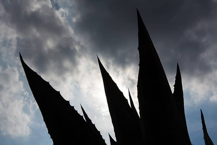 Selbst, wenn wir uns dafür entscheiden, die Agave in herkömmlicher Weise abzubilden, wollen viele Entscheidungen getroffen werden. Die Frage des Ausschnitts, des Standpunktes und der Perspektive, des Schärfenpunktes und der Schärfentiefe und – mit all diesem – die Frage des Bildaufbaus. Bei Agaven kommt eines erschwerend hinzu: So schön sie sind, diese Pflanzen. Sie wachsen oft an den undankbarsten Stellen – in Blumenkübeln, auf Mauern, vor Gestrüpp oder gar inmitten von Unrat.