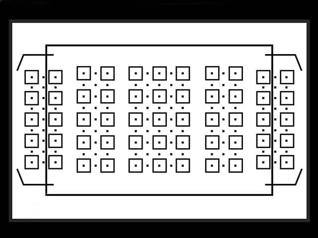 Die Messfelder decken in der Breite praktisch das gesamte Bildfeld ab und auch oben und unten, wo nur sehr schmale Streifen ohne AF-Felder liegen. Wählt man das kleinere Messfeld (Crop 1,3x bezogen auf das DX-Format, das Rechteck im Bild oben) ist die Messfeldabdeckung noch dichter.