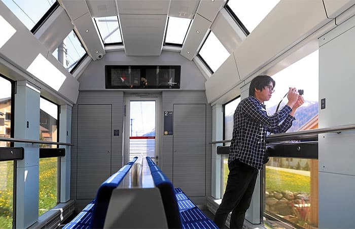 Ein Herz für Fotografen zeigt die Rhätische Bahn in der Schweiz. Auf der Albulalinie zwischen Thusis und St.Moritz verkehren neue Gliederzüge, in die spezielle Fotowaggons integriert sind.
