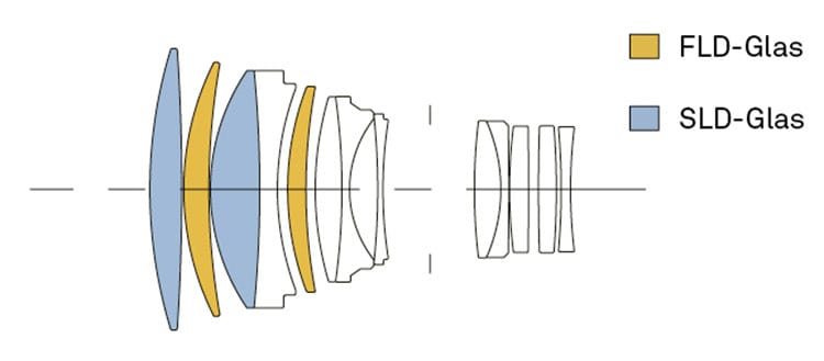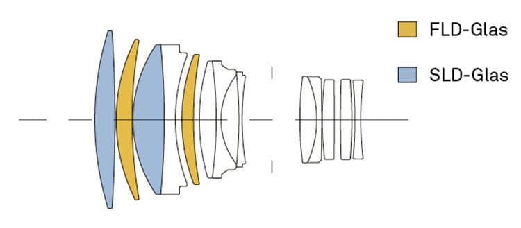 Das Objektiv ist aus 13 Linsen in 10 Gruppen aufgebaut.