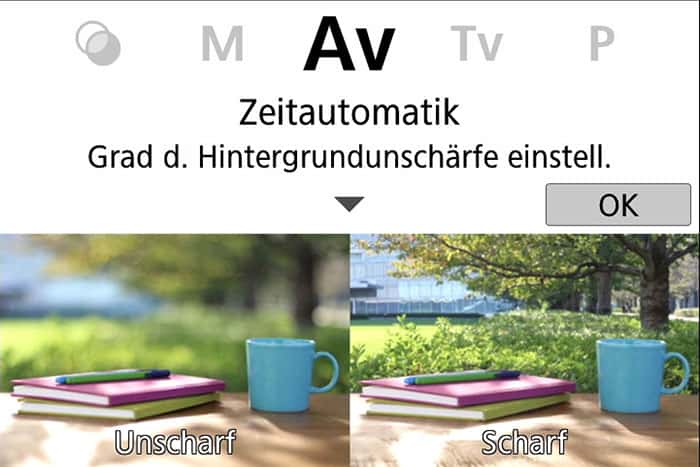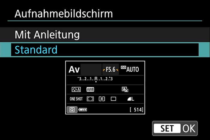 … dasselbe neu gestaltete helle Menü, das Einsteigern und Aufsteigern von einem Smartphone den Umgang mit einer DSLR und ihren vielen Möglichkeiten noch leichter machen soll. Grundlegende Einstellungen werden erklärt – ebenso, welche Auswirkungen Änderungen bestimmter Parameter auf das Bild haben.