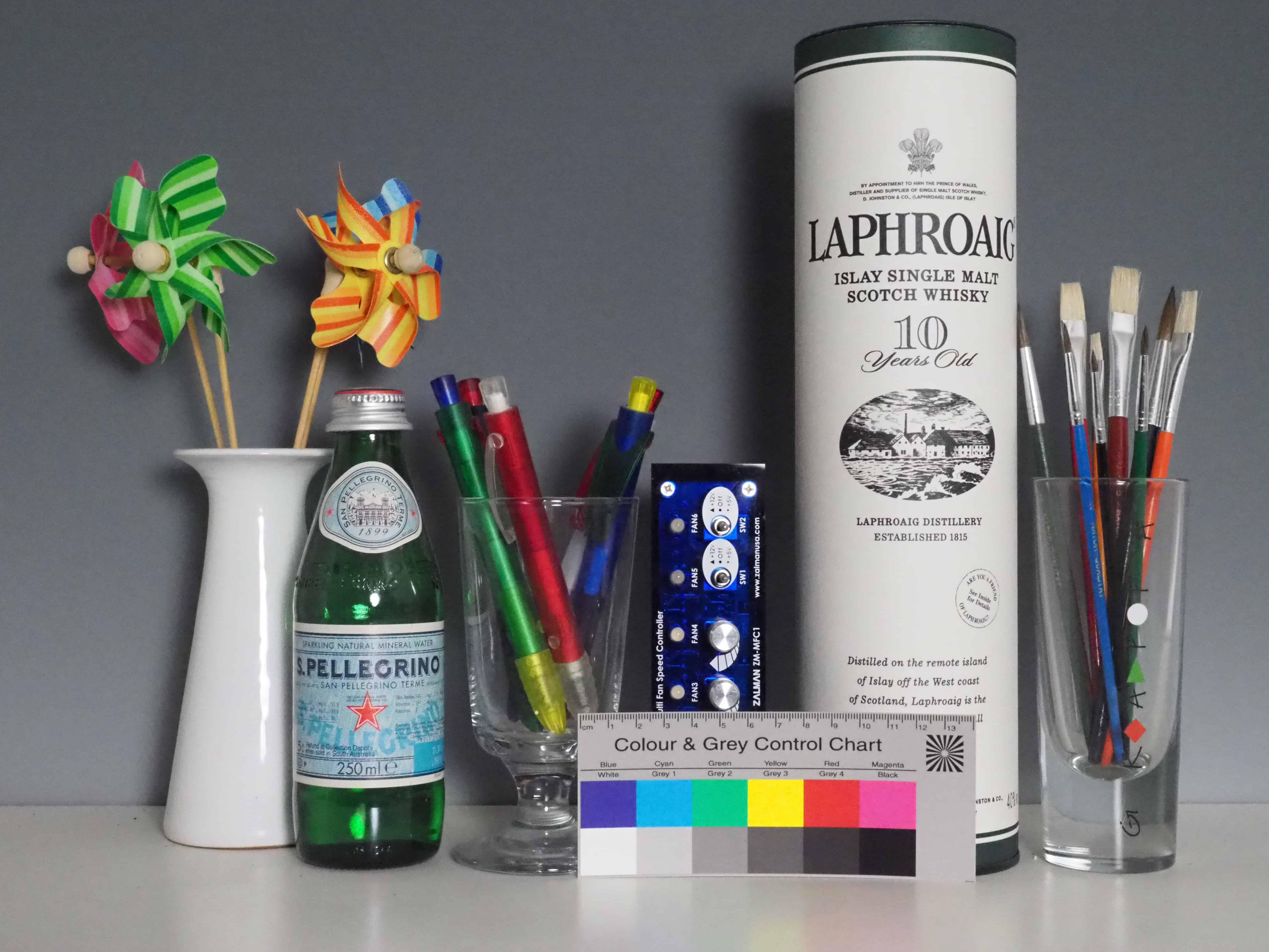 Der Vergleich mit den ISO-Reihen anderer Kameras zeigt, dass es bei aller Ähnlichkeit doch Unterschiede in der Wiedergabe des immer gleichen Aufbaus gibt, wobei besonders der automatische Weißabgleich seine Rolle spielt.