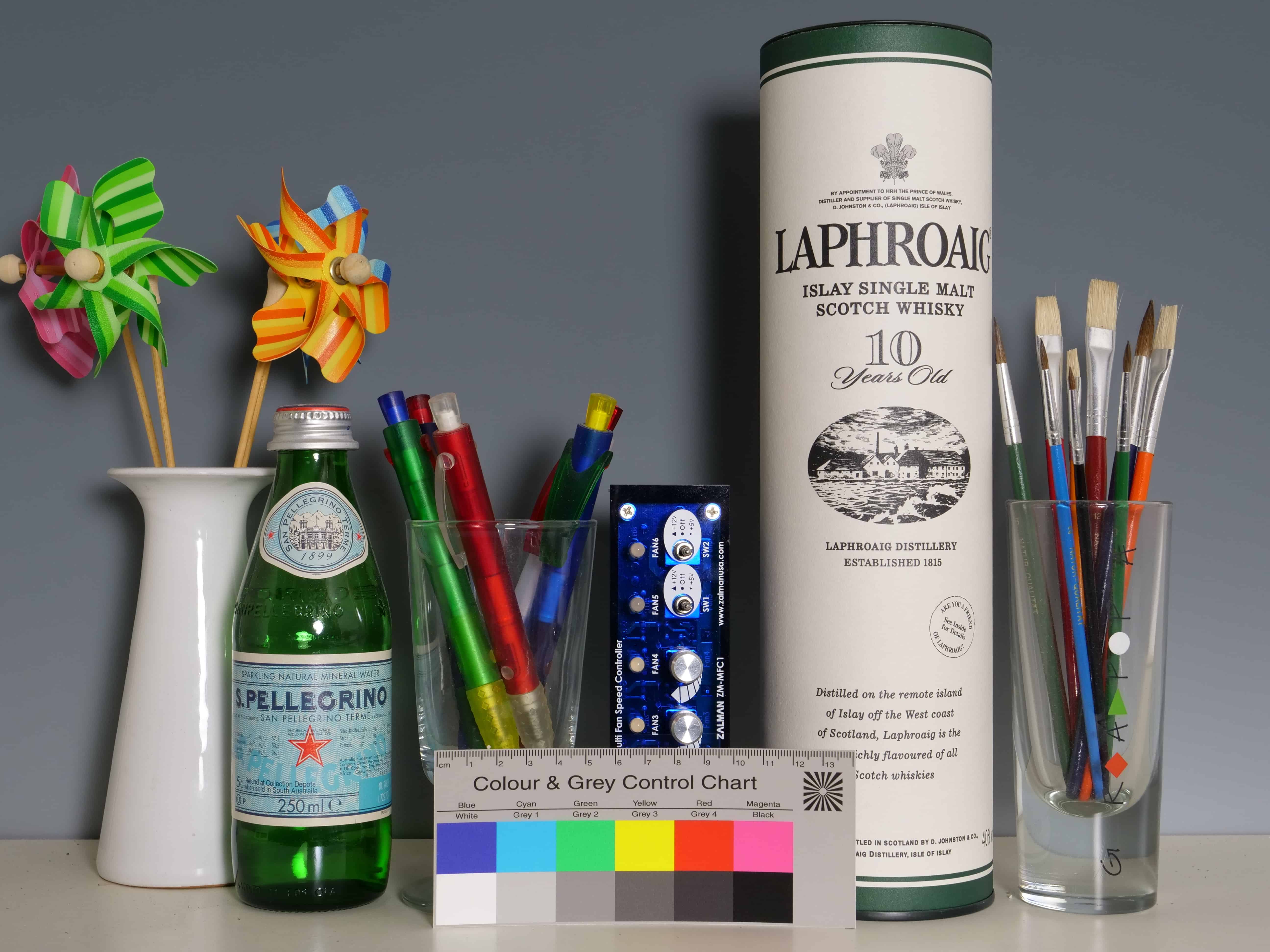 Der Vergleich mit den ISO-Reihen anderer Kameras zeigt, dass es bei aller Ähnlichkeit doch Unterschiede in der Wiedergabe des immer gleichen Aufbaus gibt, wobei besonders der automatische Weißabgleich seine Rolle spielt.