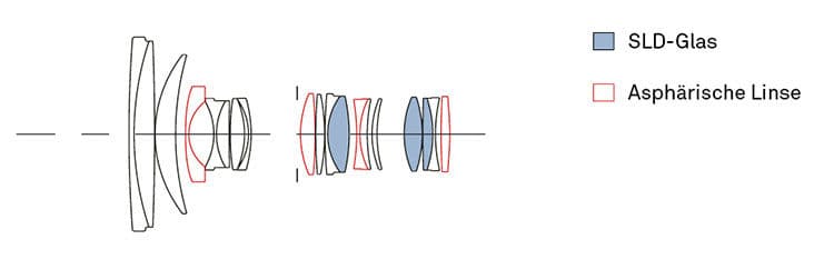 Das Objektiv ist aus 19 Linsen in 14 Gruppen aufgebaut. Um Abbildungsfehler zu minimieren drei SLD-(Super Low Dispersion)-Glaselemente sowie vier asphärische Linsen verbaut. Damit wird, so Sigma, „eine außergewöhnliche optische Leistung im gesamten Zoombereich erzielt“.