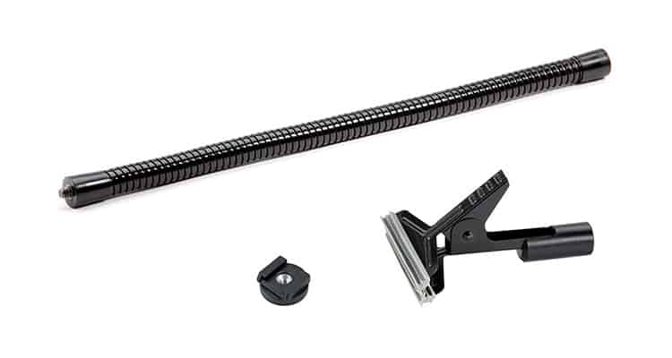 Das Makro-Kit CROSS CX668 besteht aus einem 430 mm langen, exiblen Schwanenhals, einem separaten Blitzschuh sowie aus einer stabilen Fixierklemme. Die Klemme und der Blitzschuh werden mit einem 1/4-Zoll-Anschlussgewinde am Schwanenhals fixiert
