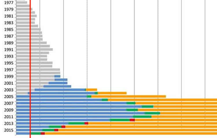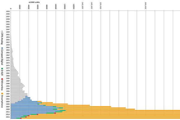 Im Moment findet man im Internet immer wieder immer wieder eine Grafik, die zeigt, wie viele Kameras seit 1933 pro Jahr hergestellt wurden.
