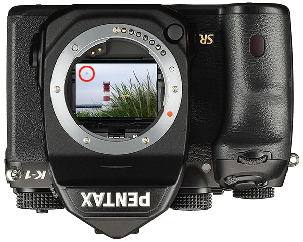 Nun kann man bei der Reinigung „umdenken“ … oder einfach die Kamera auf den Kopf stellen. Jetzt findet man den Staub dort, wo er auch im Bild zu sehen ist.