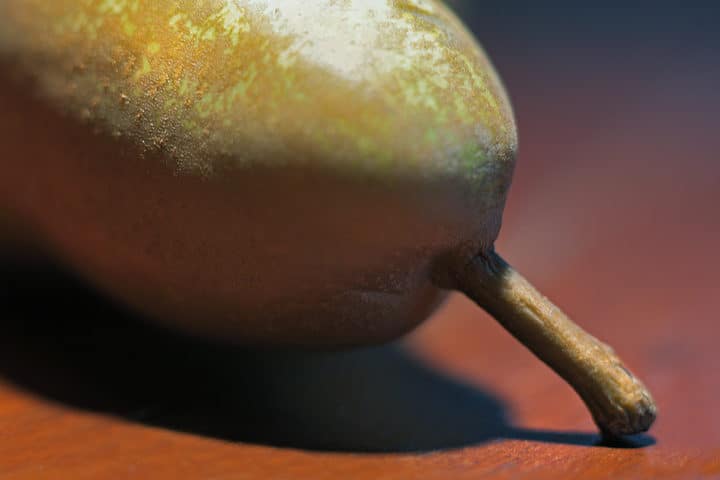 Durch das Gegenlicht von unten könnten allerdings so hohe Kontraste entstehen, dass die dunklen Partien in der Birne zu wenig Details zeigen. Damit diese nicht in schwarzen Schatten untergehen, habe ich mir einen besonderen Trick ausgedacht: Ich kombiniere Food mit HDR, das gibt es sehr selten.