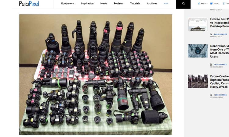Für den Fotografen (und Nikon Botschafter) Bill Frakes sind das 45 Gehäuse, (wenn ich mich nicht verzählt habe) und rund 4 Dutzend Objektive (die wollte ich nun nicht mehr zählen)!