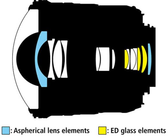 Zum optischen Aufbau gehören zwei Asphären und drei Linsen aus ED-Glas. Nanokristallvergütung und zusätzliche Fluorvergütung der außen liegenden Linsenoberflächen sollen zudem zur herausragende Abbildungsleistung beitragen. Wie herausragend sie ist, wird sich im Praxistest zeigen.