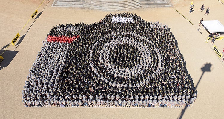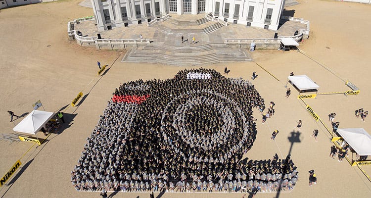 Davon haben sich die Mitarbeiter von Nital, dem offiziellen Vertrieb für Nikon in Italien, nicht abschrecken lassen und mehr als 1000 Menschen zusammengebracht, die gemeinsam „die größte menschliche Kamera der Welt“ formten. Solche Superlative sollte man stets mit Vorsicht genießen – nicht so in diesem Fall, denn der Rekord wird ins Guiness-Buch der Rekorde aufgenommen.