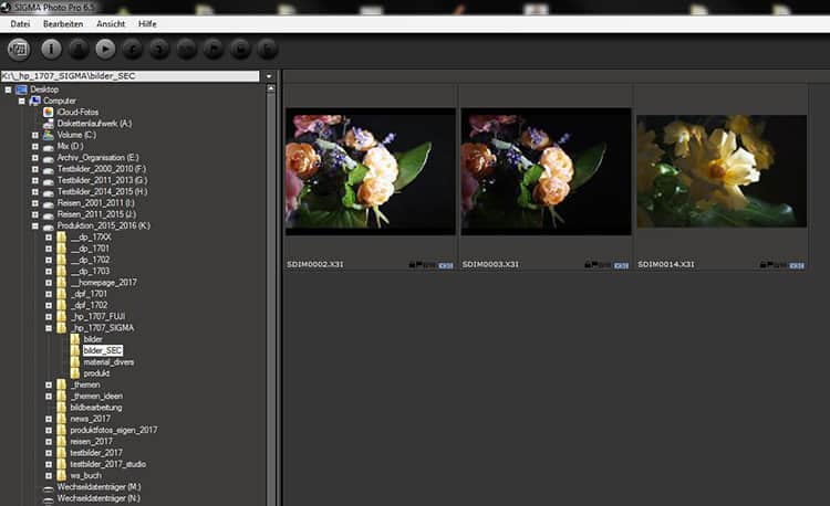 Im Gegensatz zu X3F-Dateien können X3I-Dateien nicht schon in der Kamera entwickelt werden. Man benötigt den RAW-Konverter Sigma Photo Pro 6 in der neuesten Version (auf meinem Rechner ist Photo Pro 6.5.3 installiert).
