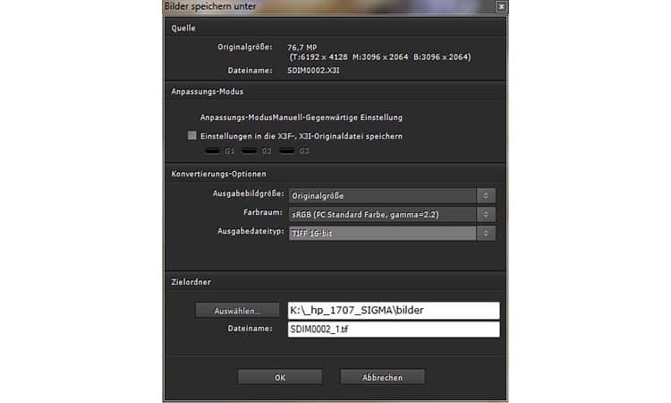In der Kamera werden im SFD-Modus die sieben Aufnahmen werden als RAW-Bilder in einem besonderen Datei-Format gespeichert: X3I, während für normale Aufnahmen das bekannte X3F-Format zum Einsatz kommt (dazu mehr in einer späteren Folge unserer kleinen Serie).