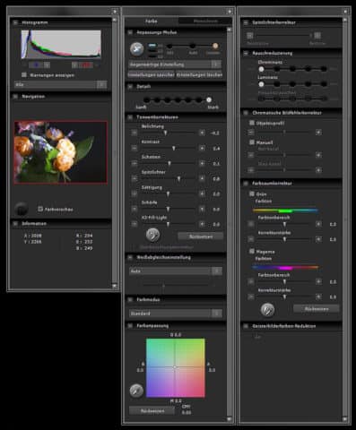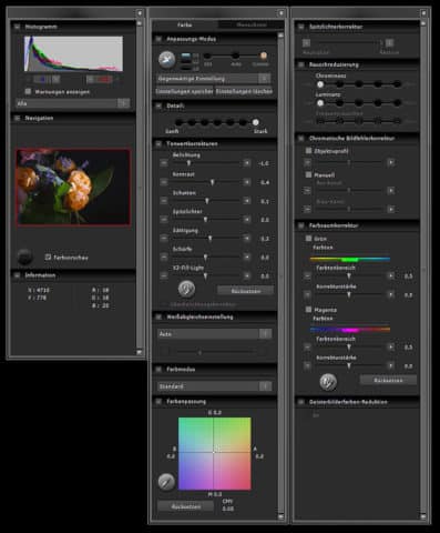 Aber natürlich sind immer noch Feinjustierungen möglich – die jedoch nicht auf das fertige Bild angewandt, sondern in die sieben RAW-Dateien eingearbeitet werden, was gegebenenfalls ein paar Sekunden dauern kann. Dadurch wird sichergestellt, dass alle Daten für spätere Bearbeitungen der X3I-Datei zur Verfügung stehen.