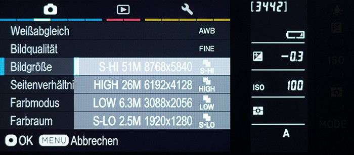 Wie bei den Schrauben: Bildgröße 6192 x 4128 Pixel. JPEG plus RAW.