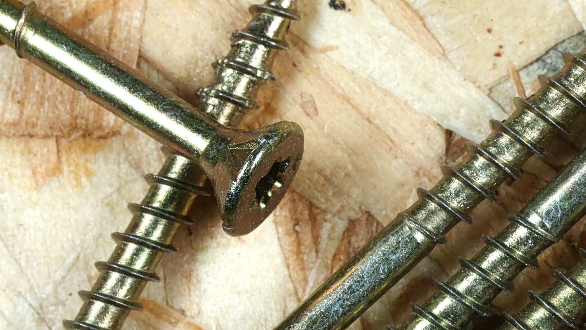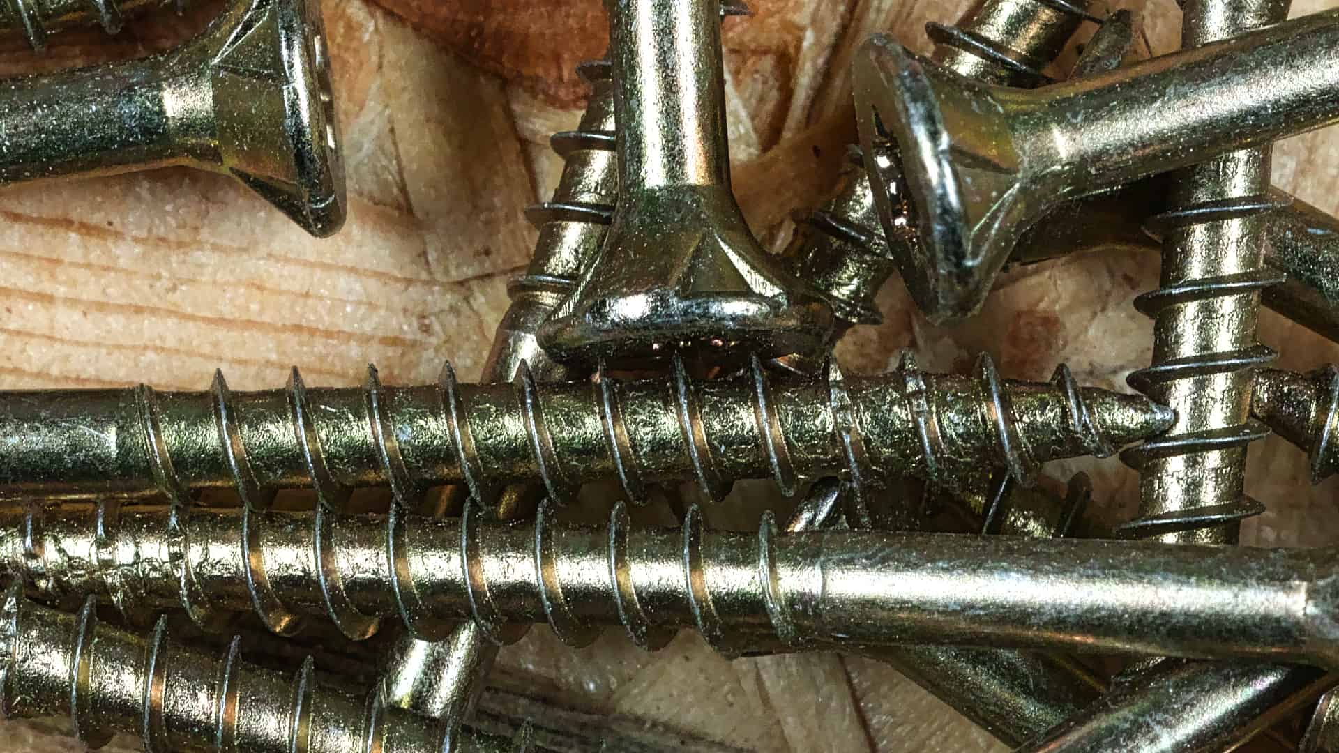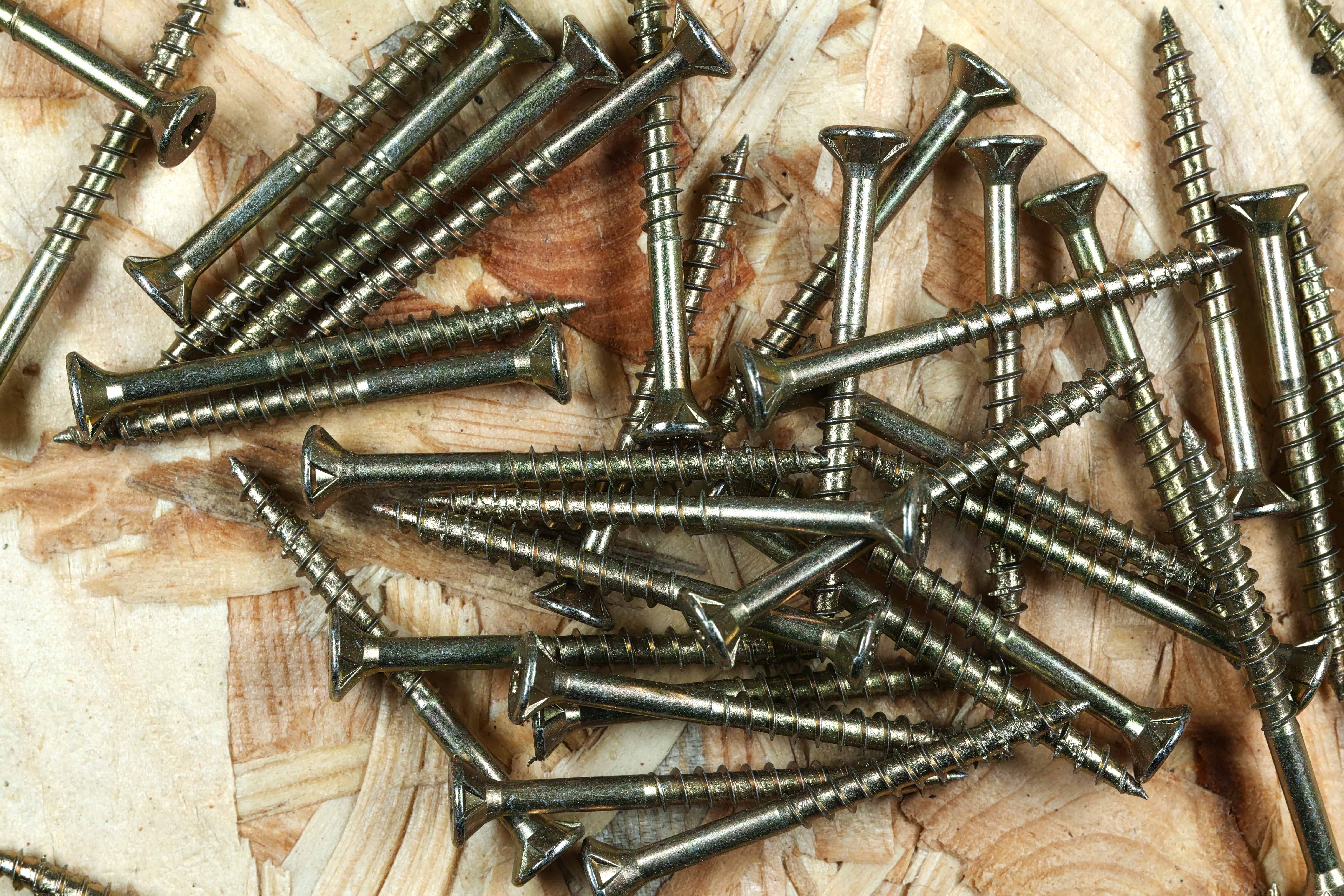 - eine Handvoll Schrauben auf einer OSB-Platte