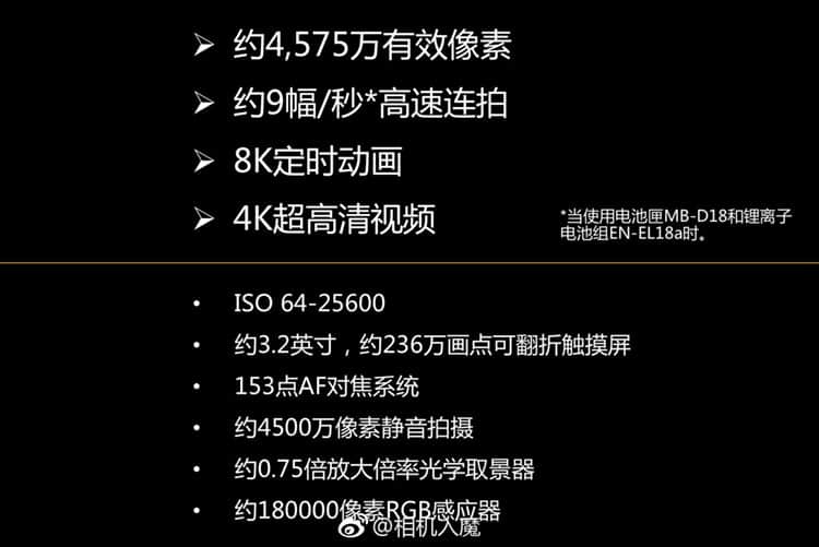 Auch wenn man (fast) nichts lesen kann: die Folien zeigen die Nikon D850 in der Frontalansicht ganz.