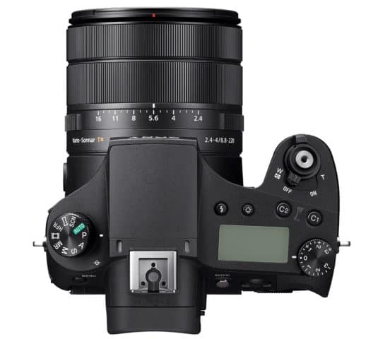 Das fest eingebaute Objektiv ist ein Superzoom: das Zeiss Vario-Sonnar T* 2,4-4/24-600 mm [@KB]. Im optischen Aufbau sind eine ED-Linse und ED-Asphären zu finden. Es kommt die Zeiss T* Beschichtung zum Einsatz. Alles zusammen soll, so die Pressemitteilung, über den gesamten Brennweitenbereich eine herausragende Bildqualität liefern.