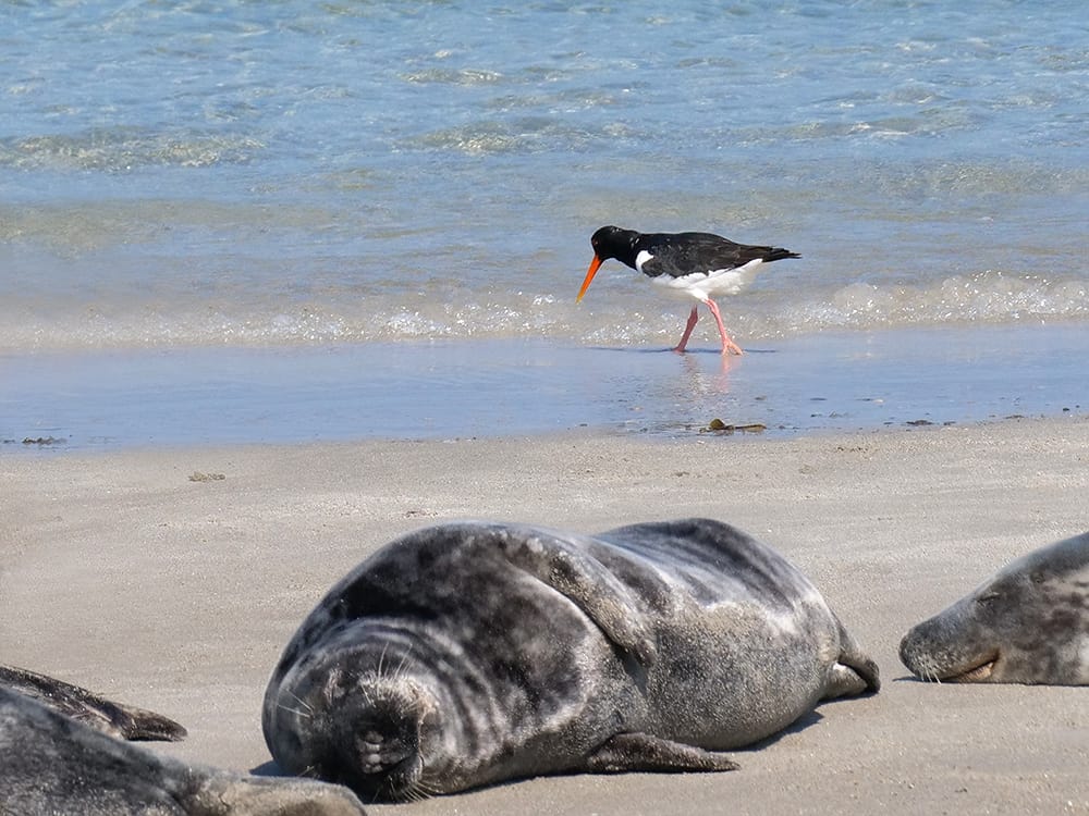 Hier werden auch Kegelrobben (ggf. nur als Staffage für Austernfischer)  zu Motiven.