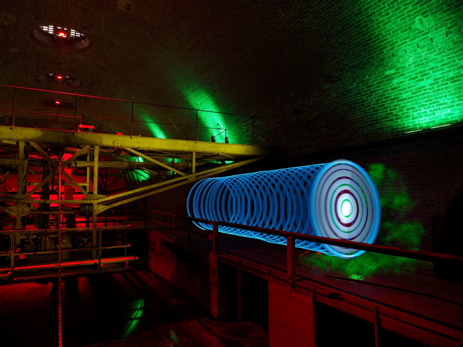 Man kann mit diesem Modus auch gut jemanden aufnehmen, der ein Lichtbild im Sinne des Wortes vor einem schön beleuchteten Hintergrund zeichnet. Der Hintergrund bleibt dank Basisbelichtung gleich, die Lichtmalerei kommt dazu.
