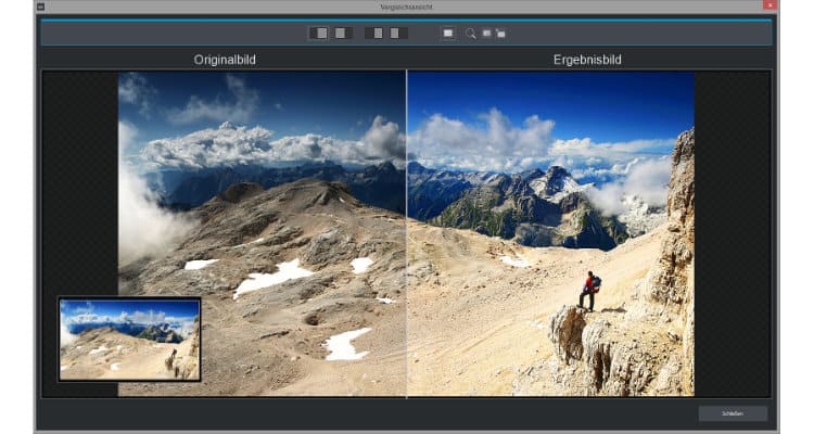 Da gerade in Zeiten von Smartphones die Bildanzahl deutlich zunimmt gibt es auch ein praktisches Analysetool. Dieses bewertet die Bilder mit bis zu fünf Sternen und zieht dabei Bewertungskriterien wie Helligkeit, Brillanz, Schärfe, Farbechtheit, Details und Rauschen heran. Ebenso schlägt das Programm direkt nach dem Öffnen eines Bildes mögliche Korrekturen vor. Wer nicht alles der Automatik überlassen möchte, der kann natürlich auch auf zahlreiche manuelle Optionen zurückgreifen.