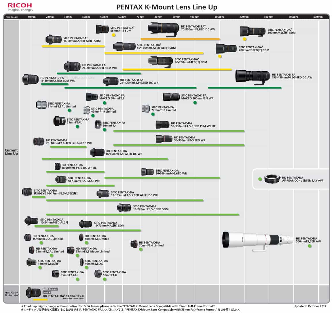 Hier ist 2018 (im Moment) mit einem neuen Zoom zu rechnen, dem HD Pentax-DA* 2.8/11-18 mm.