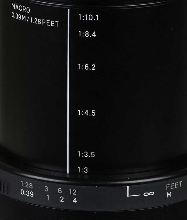 Beim Zoomen werden zwei innere Tuben aus dem äußeren Tubus geschoben, und auf dem einen sind Abbildungsmaßstäbe aufgetragen. Sie beginnen bei 1:10,1 und enden erst bei 1:3. Damit ist das Zoom zwar kein echtes Makroobjektiv (dafür gibt es Spezialisten bei Sigma), aber doch sehr nah dran.
