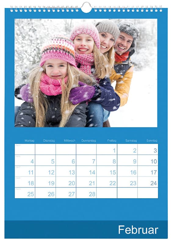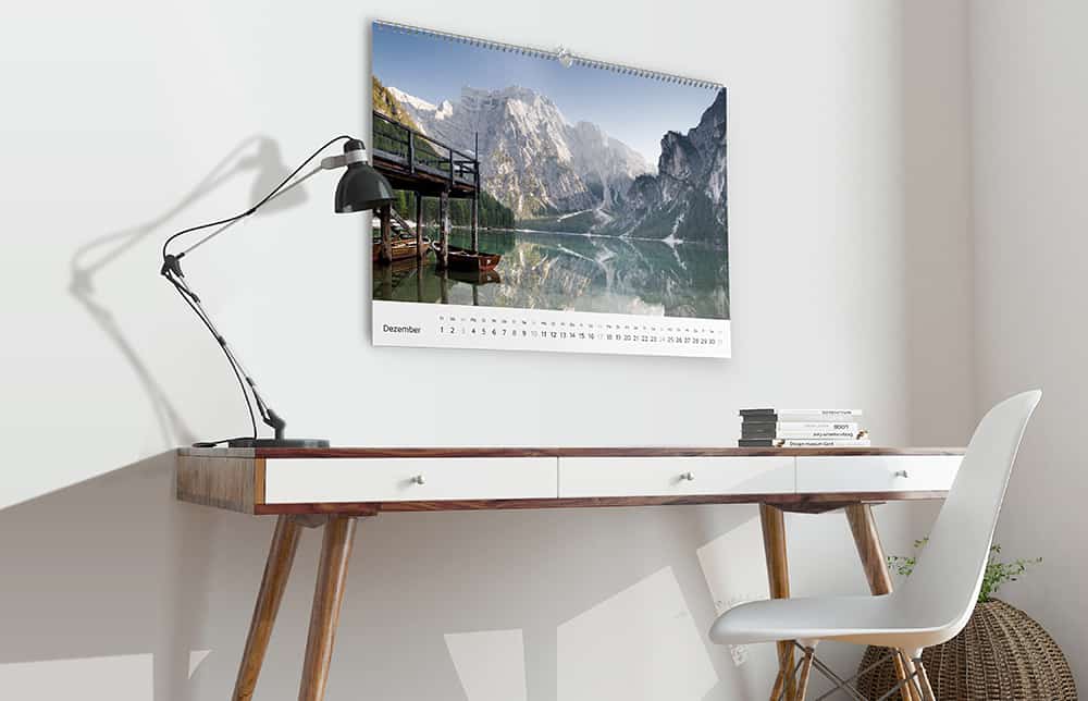 Auf einem Kalenderblatt kann man ein einzelnes Bild zeigen, aber auch eine Collage aus mehreren Aufnahmen, man kann unterschiedliche Schriften, Kalendarien und Hintergründe und die passende Farbe der Spiralbindung (Schwarz, Weiß oder Silber) wählen. Das Ergebnis ist auf jeden Fall ein individuelles Schmuckstück für jeden Raum.
