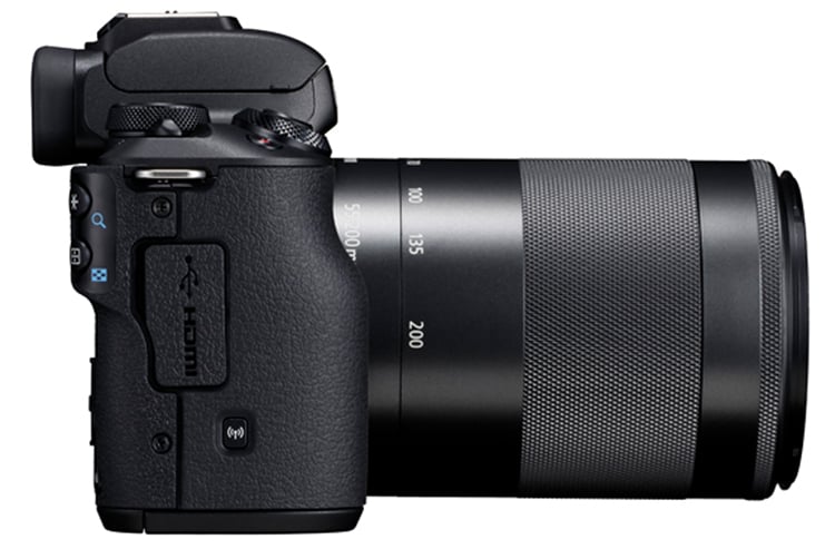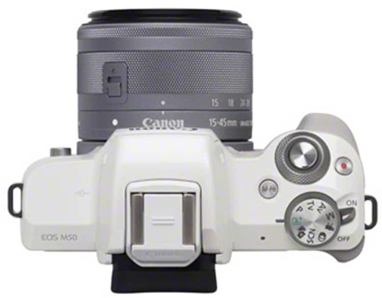 Wie die EOS M5 folgt auch die EOS M50 dem DSLR-Design, Unter dem Sucherdach steckt ein elektronischer Sucher, der mit einer Auflösung von 2,36 Mio. Dots ordentlich ist.