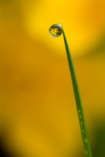 Tipp 17 Nach einem Frühlingsschauer hängen Tropfen an Blüten, Zweigen oder Ästen, die als Motive einiges hermachen – insbesondere, wenn sie als Linse wirken und den Hintergrund zeigen. Hier ist wieder das Makro-Equipment gefragt.