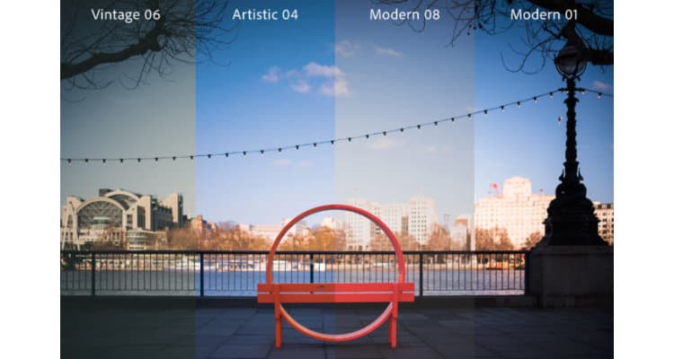 Gleichzeitig möchte Adobe die bereits länger integrierten Kamera-Profile deutlich einfacher in der Anwendung gemacht haben. Damit nicht genug, denn es gibt auch noch 40 neue Kreativ-Filter, die in die vier Gruppen Artistic, Black & White, Modern und Vintage unterteilt werden.