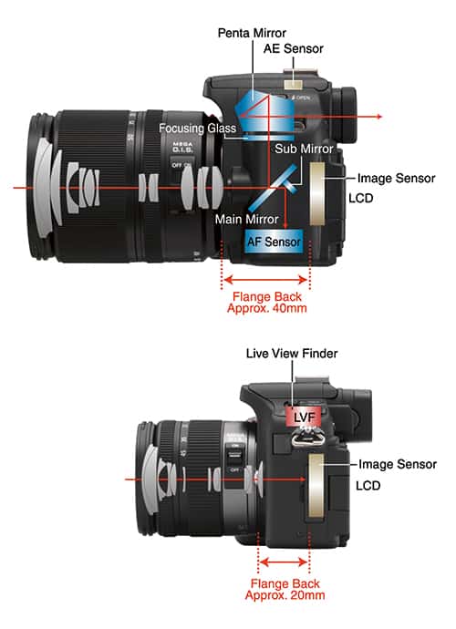 … bringt viele Vorteile mit sich: Die Gehäuse können kleiner ausfallen, die automatische Scharfstellung kann nicht durch Front- oder Backfokus beeinträchtigt werden, die Monitore im Sucher und auf der Rückwand zeigen, wie das endgültige Bild aussehen wird, der Verschluss kann lautlos arbeiten, und vieles mehr … worauf wir in den nächsten Folgen unserer Serie eingehen werden.