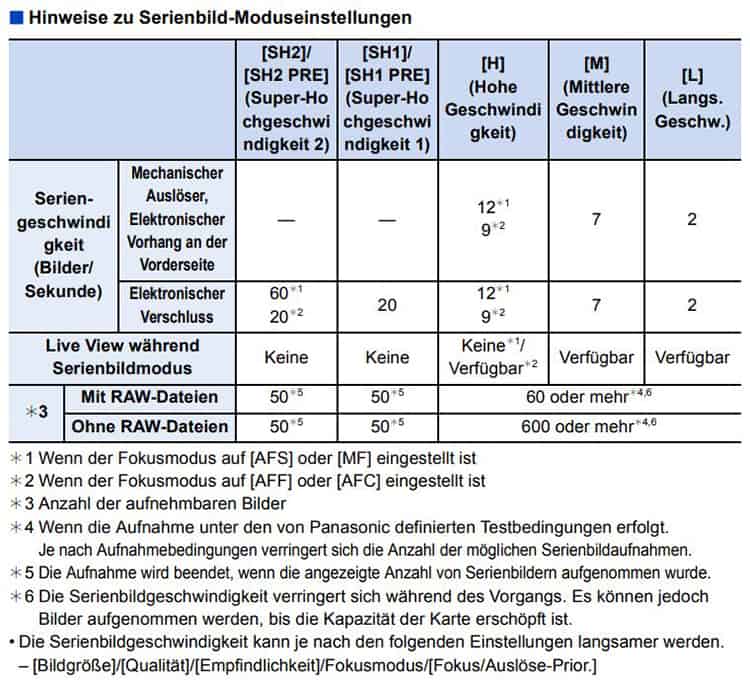 Nicht nur hinsichtlich der Verschlusszeiten sind die aktuellen Lumix Modelle sehr schnelle Kameras. Schnell sind sie auch, wenn es um Aufnahmeserien geht.