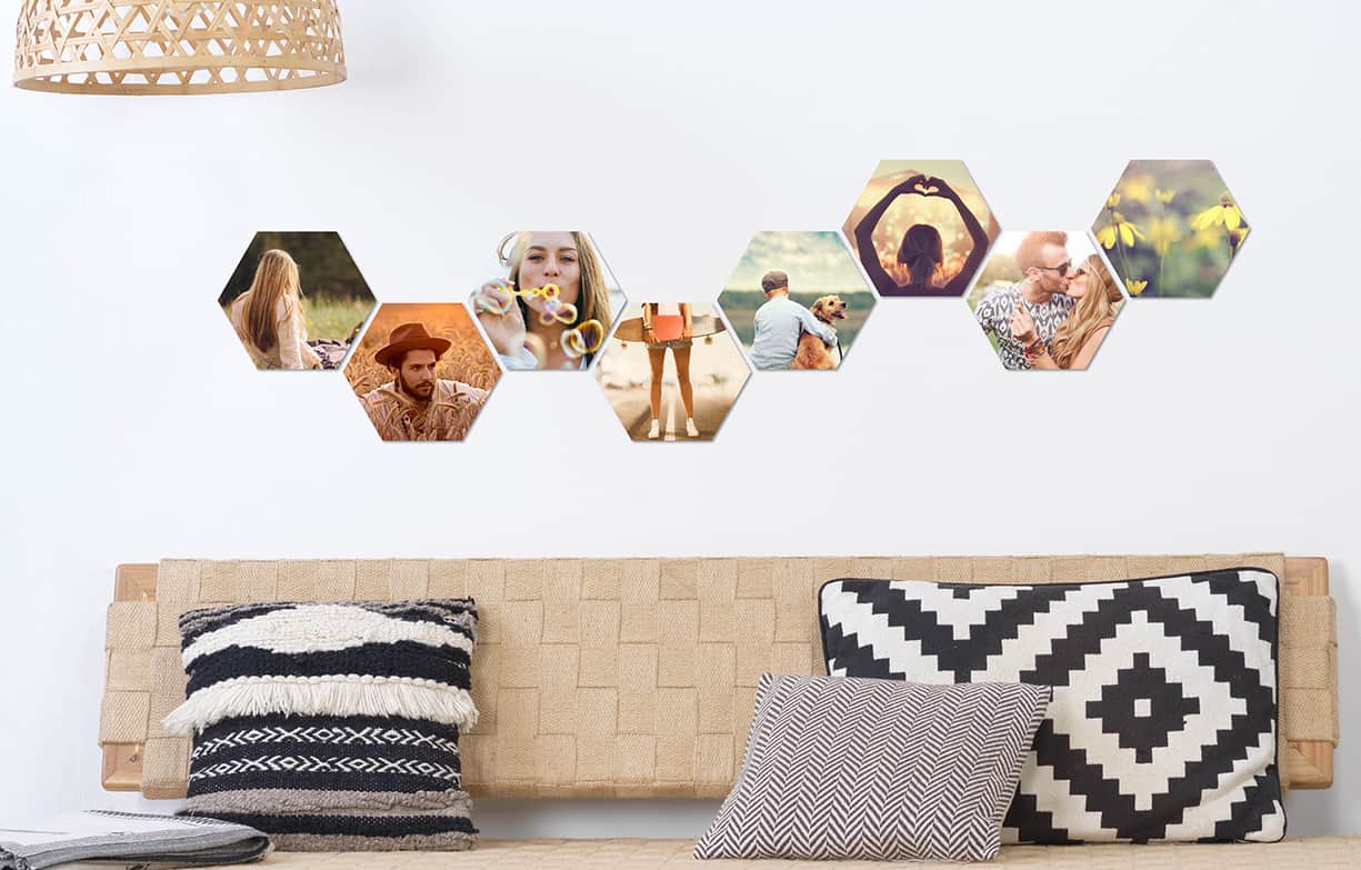Gänzlich neu ist das CeWe Fotobuch Kids, das mit extra dicken Pappseiten und einer Kunststoff-Spiralbindung besonders robust und langlebig sein soll. Ebenfalls neu ist hexxas. Dabei werden secheckige Fotokacheln erstellt, sodass sich eine Collage zusammenstellen lässt (siehe Bild).