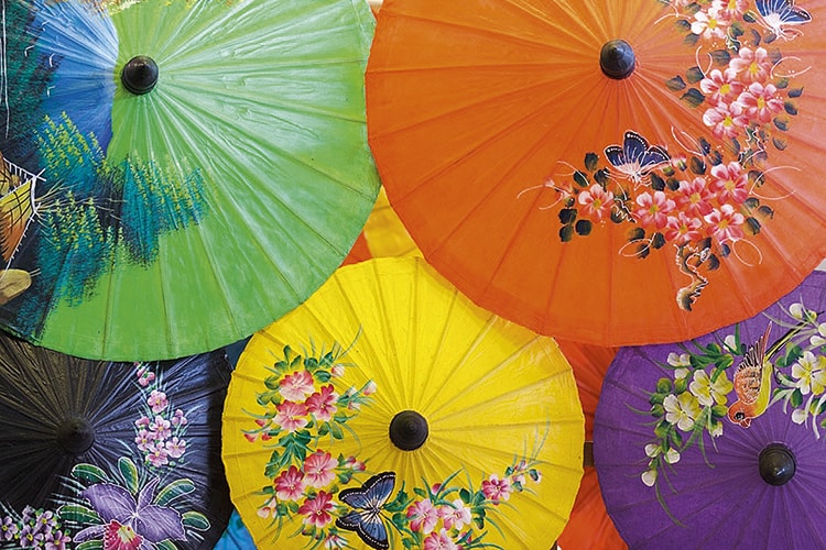 Die kleine Variante kennt man von Eisbechern, die große findet man oft auf Gartenfestivals. Im Durchlicht kommen die Farben der Schirme sehr schön leuchtend heraus, was man durch eine Kamera-Farbeinstellung wie „lebendig“ unterstreichen kann. Wer eher weiche, pastellige Farben mag, stellt den Farbregler der Kamera auf „neutral“ oder „natürlich“ und regelt in der Nachbearbeitung die Sättigung.