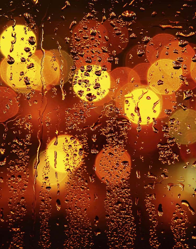 Regentropfen an einer Scheibe sind als Motiv interessanter, wenn dahinter etwas ist, von dem sie sich gut absetzen. Möglichkeiten, solche Aufnahmen zu machen, sind z. B. der Stopp in der Schlange vor einer roten Ampel an einem Regentag, aber auch der Blick auf Leuchtreklamen aus dem Wohnungs-/Bürofenster. Wichtig ist, die Schärfe bei weit offener Blende auf die Tropfen zu legen und ggf. etwas knapper zu belichten.