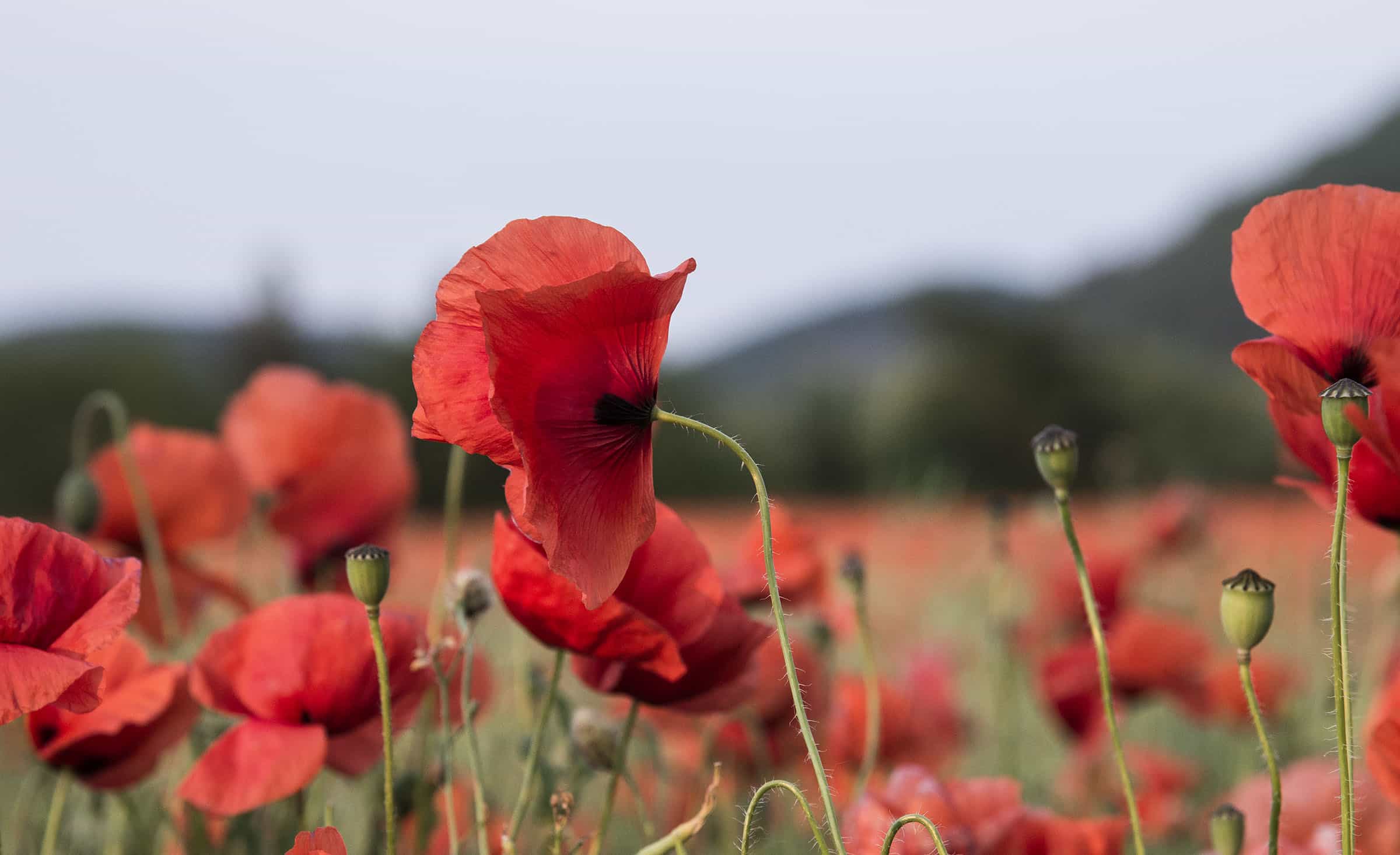 Mohnblumen kann man sich fotografisch auf die verschiedensten Weisen nähern. Mit dem Weitwinkel erfasst man ein ganzes Feld, mit dem Tele rückt man eine rote Fläche in die Nähe einer grünen Baumreihe, eine mittlere Brennweite erfasst Blütengruppen und mit dem Makro fotografiert man eine einzelne Blüte oder Samenkapsel. Die große Blende lässt den Hintergrund verschwimmen. Die rote Blüten wirken sowohl im Auflicht wie im Gegenlicht oder Streiflicht … da ist für jeden etwas dabei.