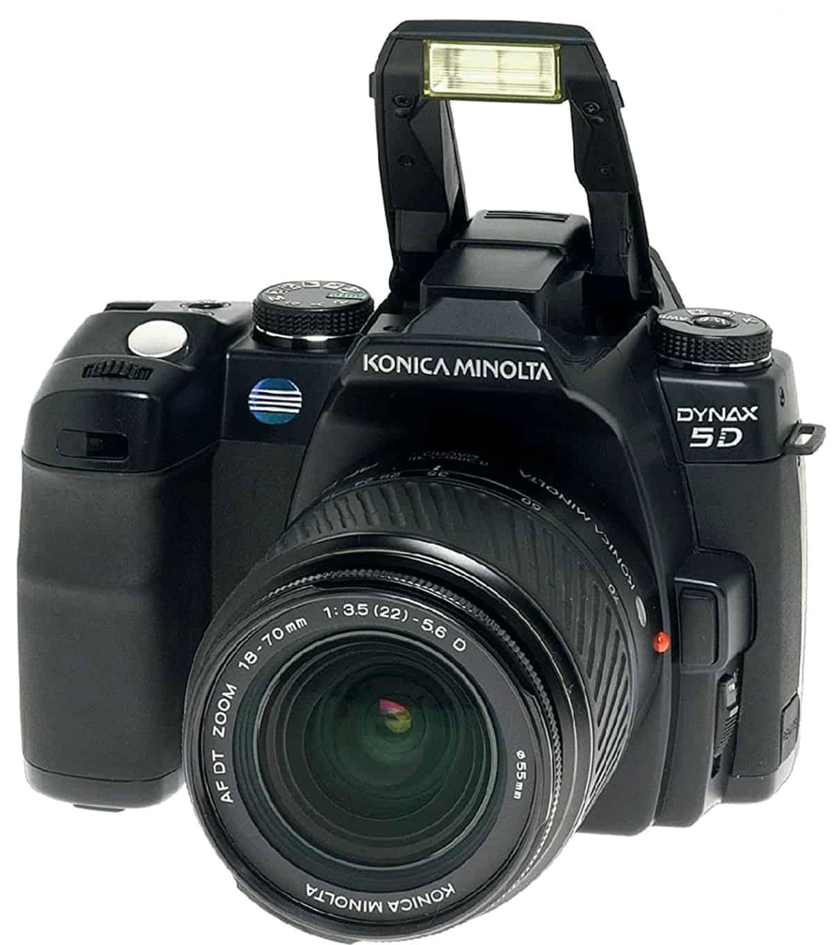 Noch im Rennen ist Konica Minolta. Erst im folgenden Jahr wird Sony anfangen, basierend auf Konica-Minolta-Technik in den Markt der System-Kameras vorzudringen. Die Alpha 100 ist eine überarbeitete Konica Minolta Dynax 5D, die im Herbst 2005 neu vorgestellt wird.