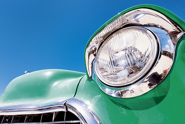 Natürlich ist Kuba ein Dorado für alle Freunde alter amerikanischer Straßenkreuzer, aber man muss nicht unbedingt so weit reisen. Besonders Oldtimer-Rallyes bieten guten Gelegenheiten für einige Bilder von chromblitzenden alten Schätzchen. Ein Problem ist, dass auch andere die Oldtimer schön finden und den Bildaufbau doch erheblich stören können. Dagegen hilft, einen tiefen Standort für die Kamera zu finden und den Himmel als Hintergrund zu wählen – umso besser, wenn sein Blau einen schönen Kontrast zum Lack bietet. Man kann in so einem Fall versuchen, Lack und Himmel mit einem Polfilter satter ins Bild zu bekommen, muss aber bedenken, dass der Filter bei sehr geschwungenen Formen nur partiell wirkt. Man sollte sich zudem darauf einstellen, einige Zeit am Rechner damit zu verbringen, tote Fliegen und andere Flecken vom Lack zu entfernen, was z. B. mit einem Bereichsreparaturwerkzeug gut gelingt. Es kopiert (meistens) passende Pixel aus der Nachbarschaft über die Problempunkte.