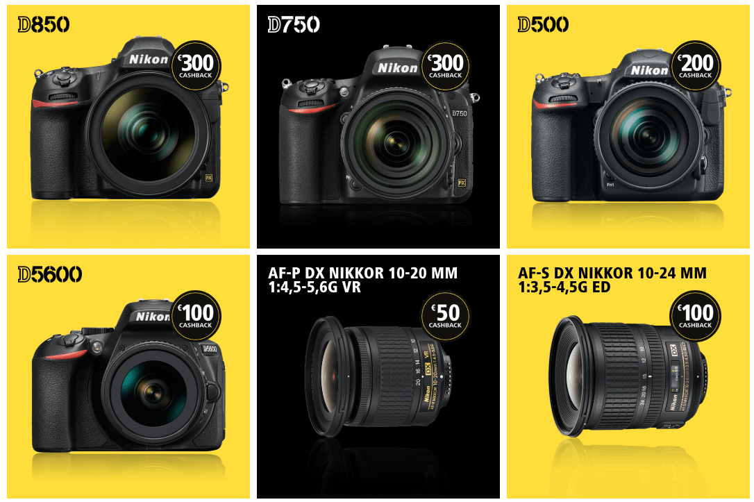Am meisten kann bei der Nikon D850 und D750 (Test) gespart werden, denn dort gibt es ein Cashback von 300 Euro. Bei der Nikon D500 (Test) und D7500 sind es 200 Euro, während die die D5600 (Test) mit 100 Euro bezuschusst wird.