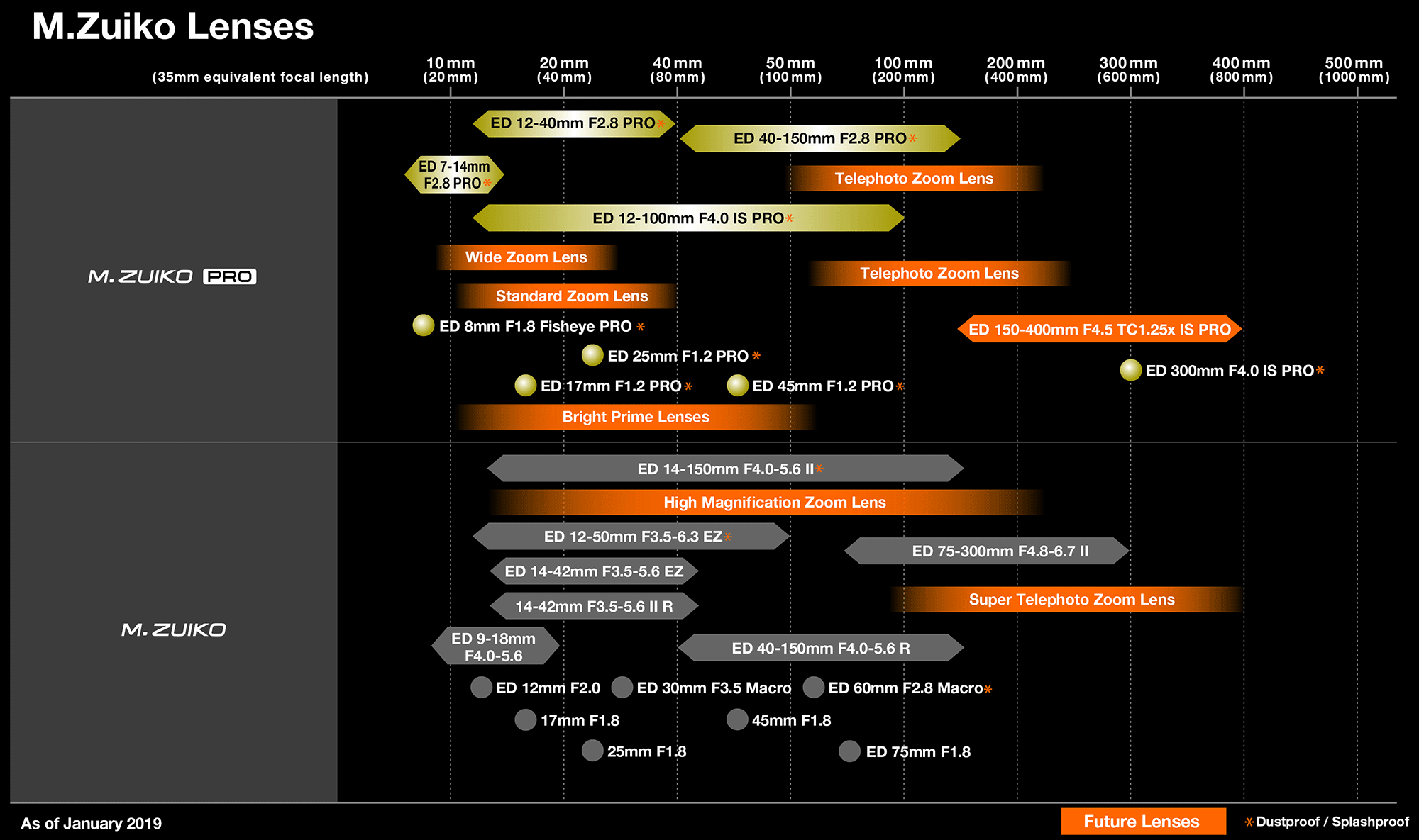 Auf der Roadmap stehen insgesamt sieben neue Objektive, von denen Olympus passenderweise fünf Stück dem M.Zuiko Pro-Label zuordnet. Es soll zwei neue Tele-Zooms geben, genau wie ein neues Standard-Zoom und ein Weitwinkel-Zool. Noch dazu kommt eine noch unbekannte Anzahl an lichtstarken Festbrennweiten.