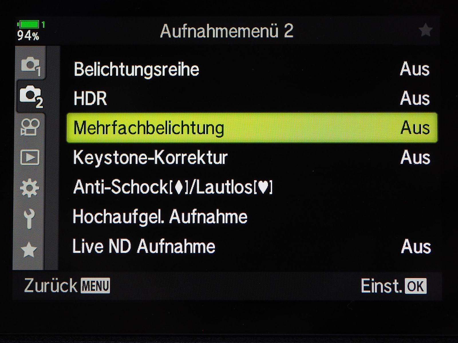 50-MPix-Aufnahmen mit dem 20-MPix-Sensor sind tatsächlich möglich. Dazu werden bis zu 16 Aufnahmen gemacht. Bei 8 Bildern wird der Sensor zwischen den Aufnahmen um eine Winzigkeit horizontal und vertikal bewegt, dann werden weitere Aufnahmen mit fest stehendem Sensor gemacht, um die Bewegung der Kamera zu analysieren und entsprechende Unschärfen aus dem Bild zu rechnen. Der zweite HiRes-Modus macht Aufnahmen mit 80 MPix (den technischen Daten zufolge nur im RAW-Modus) möglich. Hier kommt nur der Sensor-Verschub zum Einsatz und ein Stativ ist Pflicht.