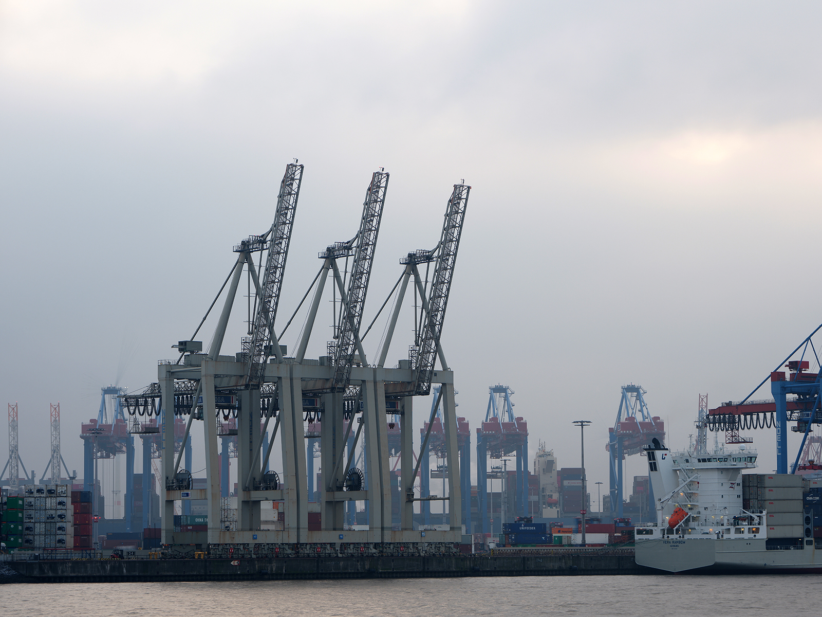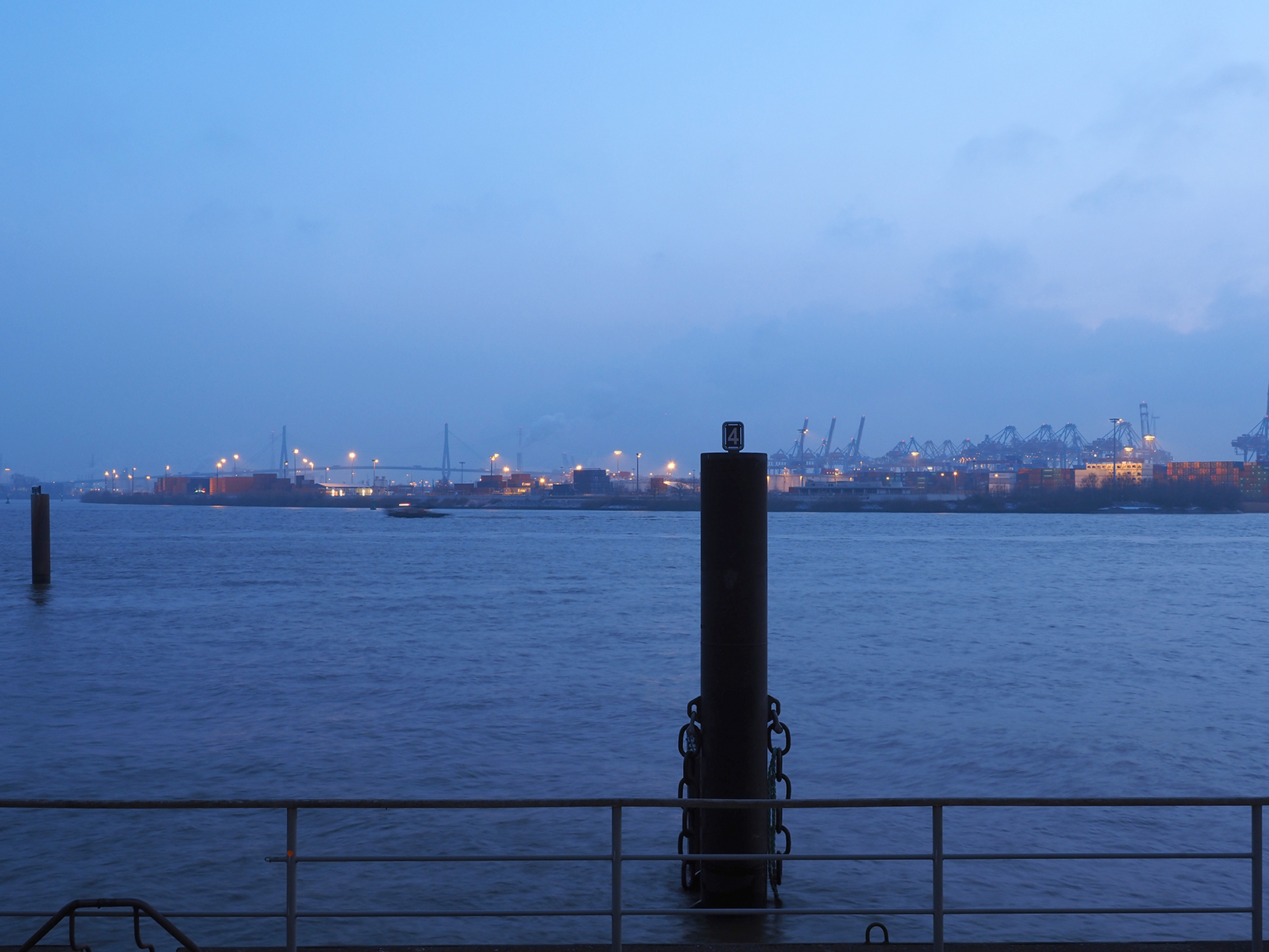 Das mit dem Ausprobieren hört sich besser an, als es war, denn Hamburg präsentierte sich wenig entgegenkommend kalt, grau und diesig – und so hatte ich die Wahl, das Probieren im Saale stattfinden zu lassen oder auf der Terrasse davor Grau-in-Grau-Bilder zu machen, unter der Gefahr, mir eine Erkältung einzufangen.