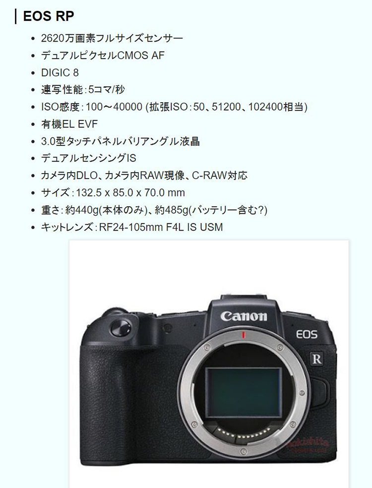 Die Seite nokishita-camera.com hat es wieder geschafft, eine brandneue Kamera vorzustellen, noch ehe sie offziell vorgestellt wurde. Die Rede ist von der Canon EOS RP.