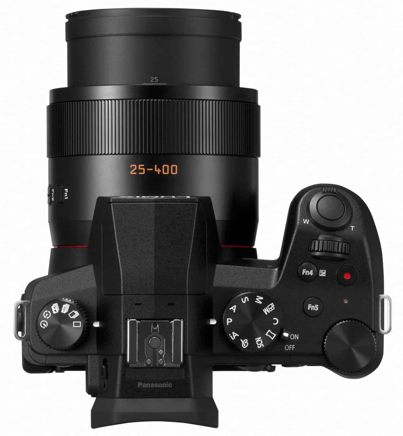 Die Lumix FZ1000 II ist im Design einer DSLM gehalten und nimmt z. B. mit der Mittelkante im Sucherdach Elemente des Top-Modells Lumix G9 auf.
