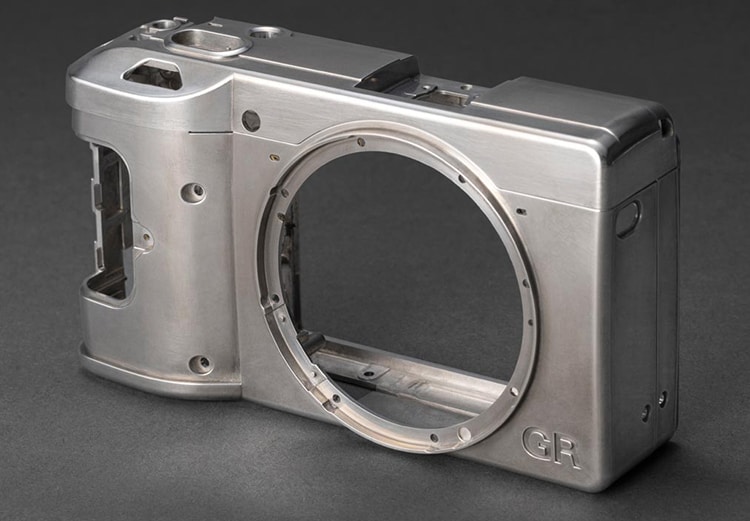 Die Basis des Gehäuses ist ein Metallchassis aus einer Magnesium/Aluminium-Legierung, die der Kamera hohe Stabilität bei geringem Gewicht (257 g) verleiht.