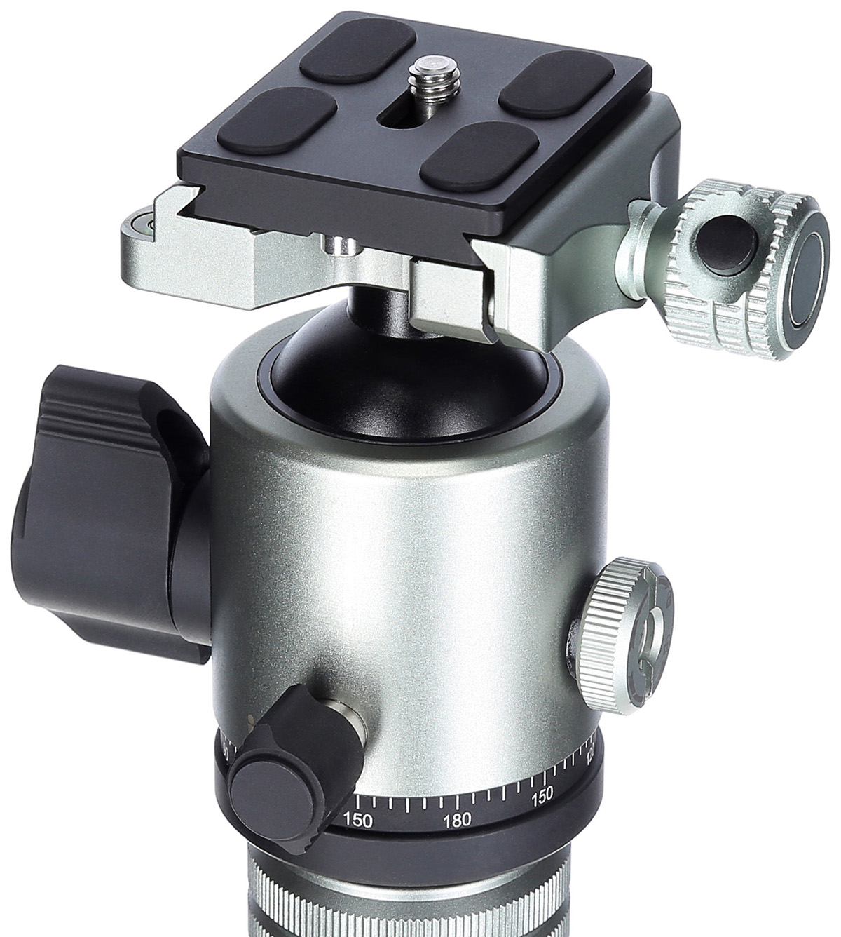 Ein Stativ braucht einen Kopf, und so sind alle drei Stative mit einem Kugelkopf ausgestattet, auf den die Kamera dank Schnellwechselplatte (Arca-Swiss-kompatibel) mit wenigen Handgriffen gesetzt werden kann.