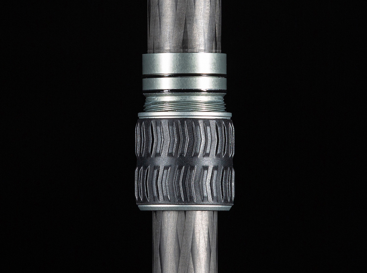 Die Beine umfassen jeweils vier Segmente, die durch Schnellverschlüsse verbunden sind. Eine kleine Drehung reicht, um die Segmente zu lösen und sicher zu arretieren. Da die unteren Segmente mit einer Skalierung versehen sind, kann man „Zwischengrößen“ sehr präzise einstellen.